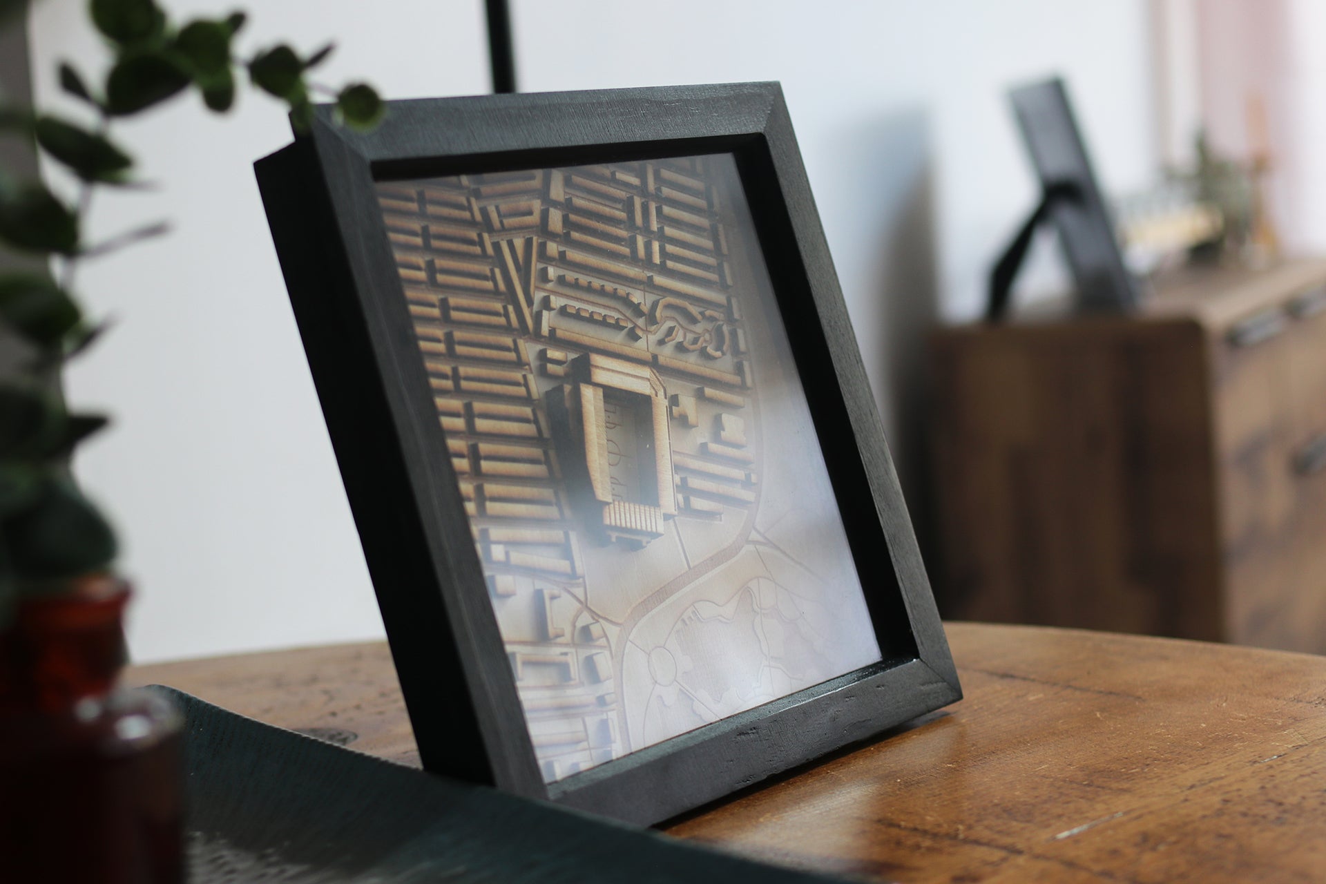 Unique gifts for football fans. Designed, cut, finished and framed in Manchester.