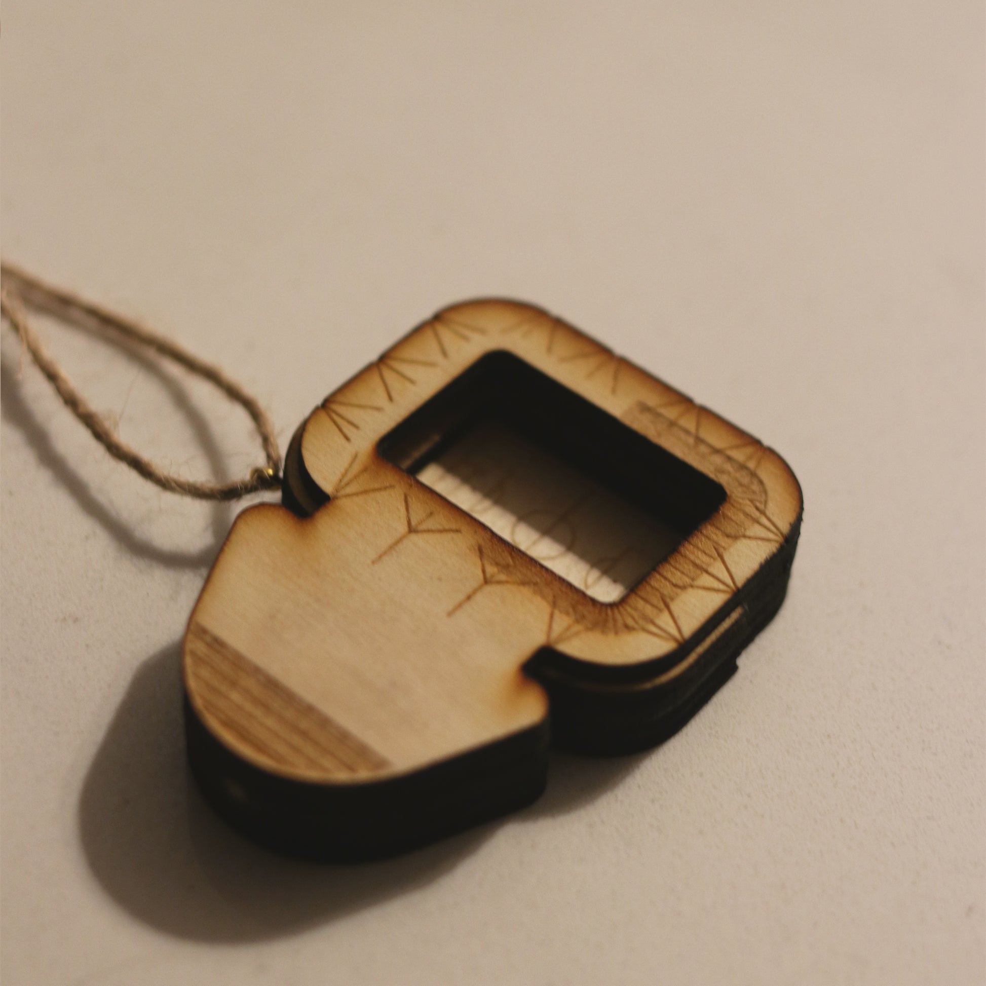All of our products are made from layers of laser cut 3mm birch plywood and hung with brown twine.