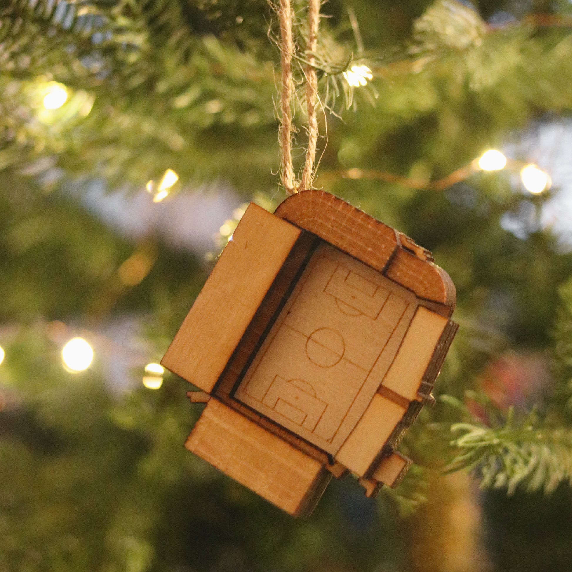 Celebrate your love for Nottingham Forest this festive season with a hand-finished The City Ground inspired Christmas tree ornament. Made from intricately laser-cut birch, this decoration captures the essence of one of English football's most traditional grounds, complete with delicate details that bring the pitch and stands to life.