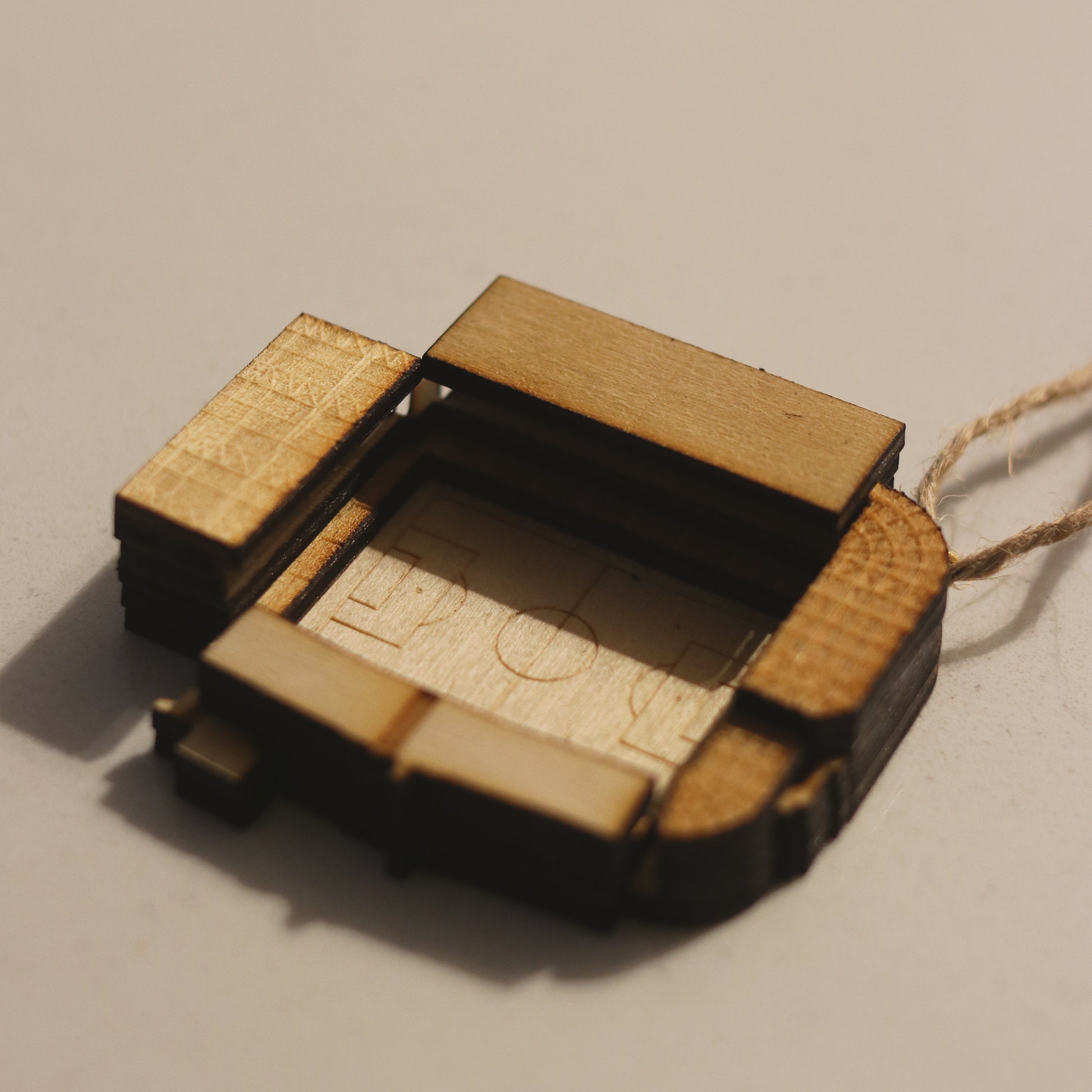 All of our products are made from layers of laser cut 3mm birch plywood and hung with brown twine.