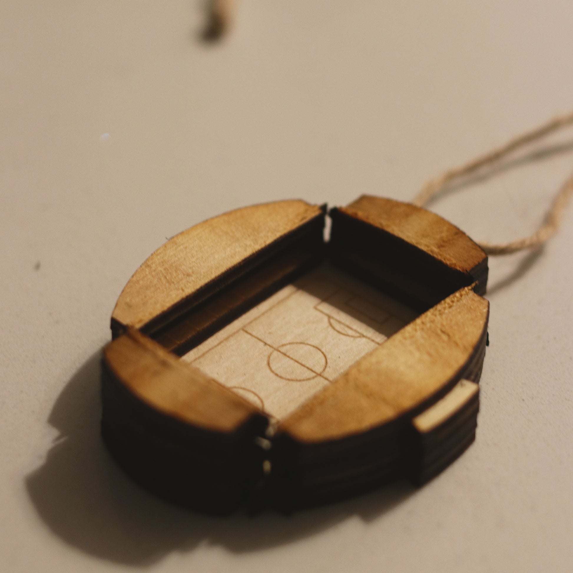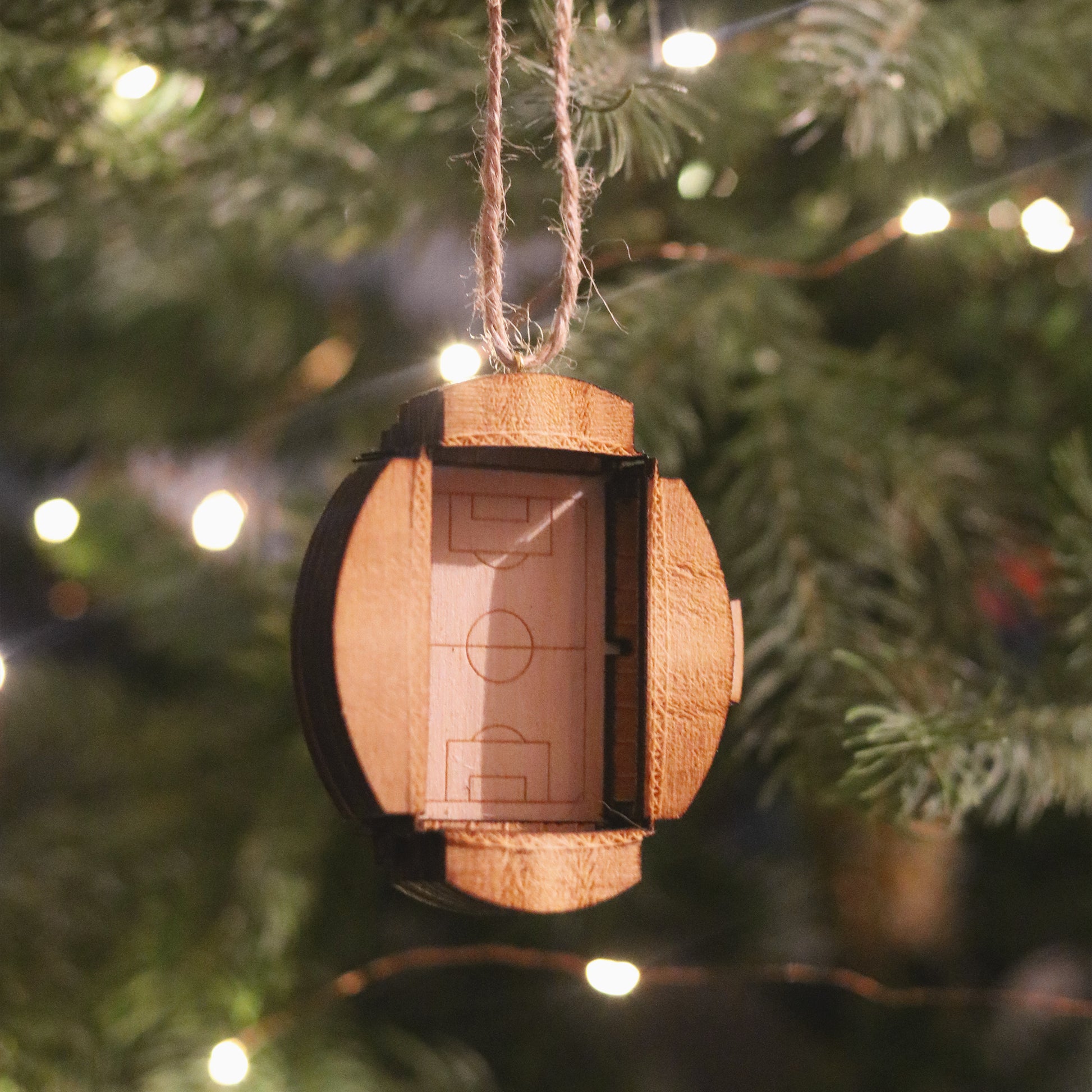 Celebrate your love for Huddersfield Town this festive season with a hand-finished John Smiths Stadium inspired Christmas tree ornament. Made from intricately laser-cut birch, this decoration captures the essence of one of English football's most unique grounds, complete with delicate details that bring the pitch and stands to life.