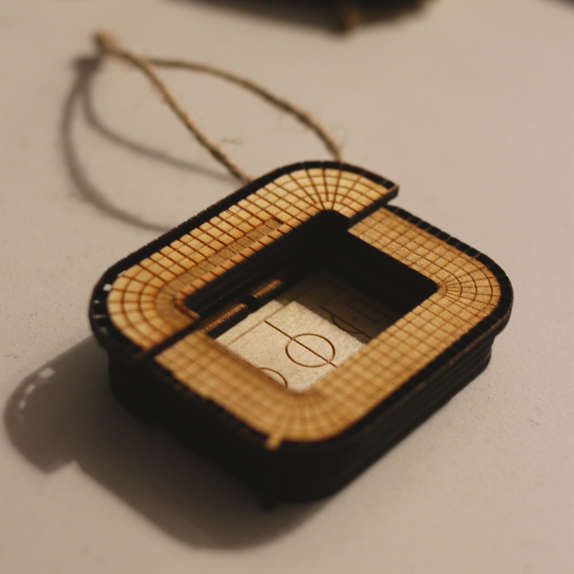 Celebrate your love for The Boro this festive season with a hand-finished Riverside inspired Christmas tree ornament. Made from intricately laser-cut birch, this decoration captures the essence of the clubs home for over 30 years, complete with delicate details that bring the pitch and stands to life.