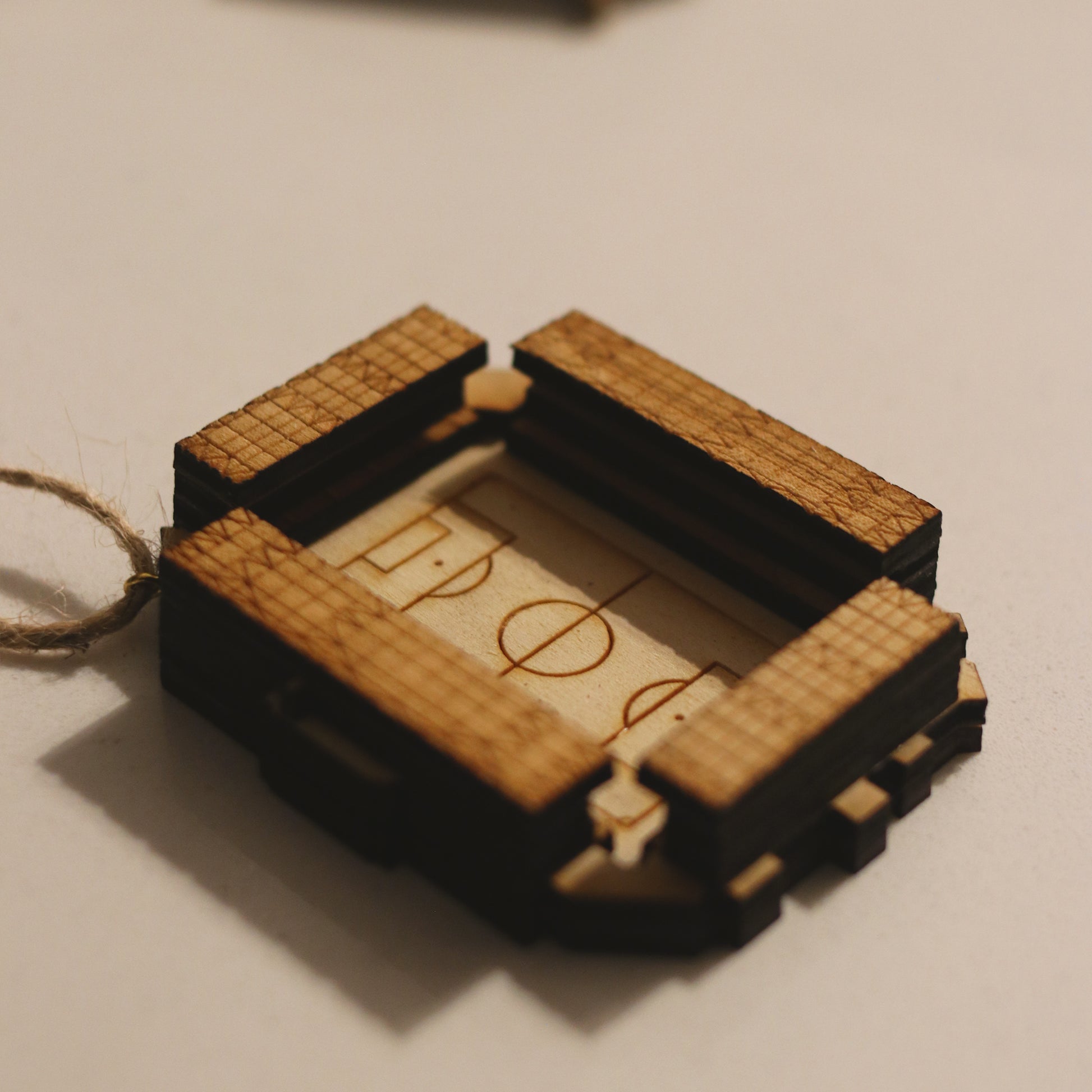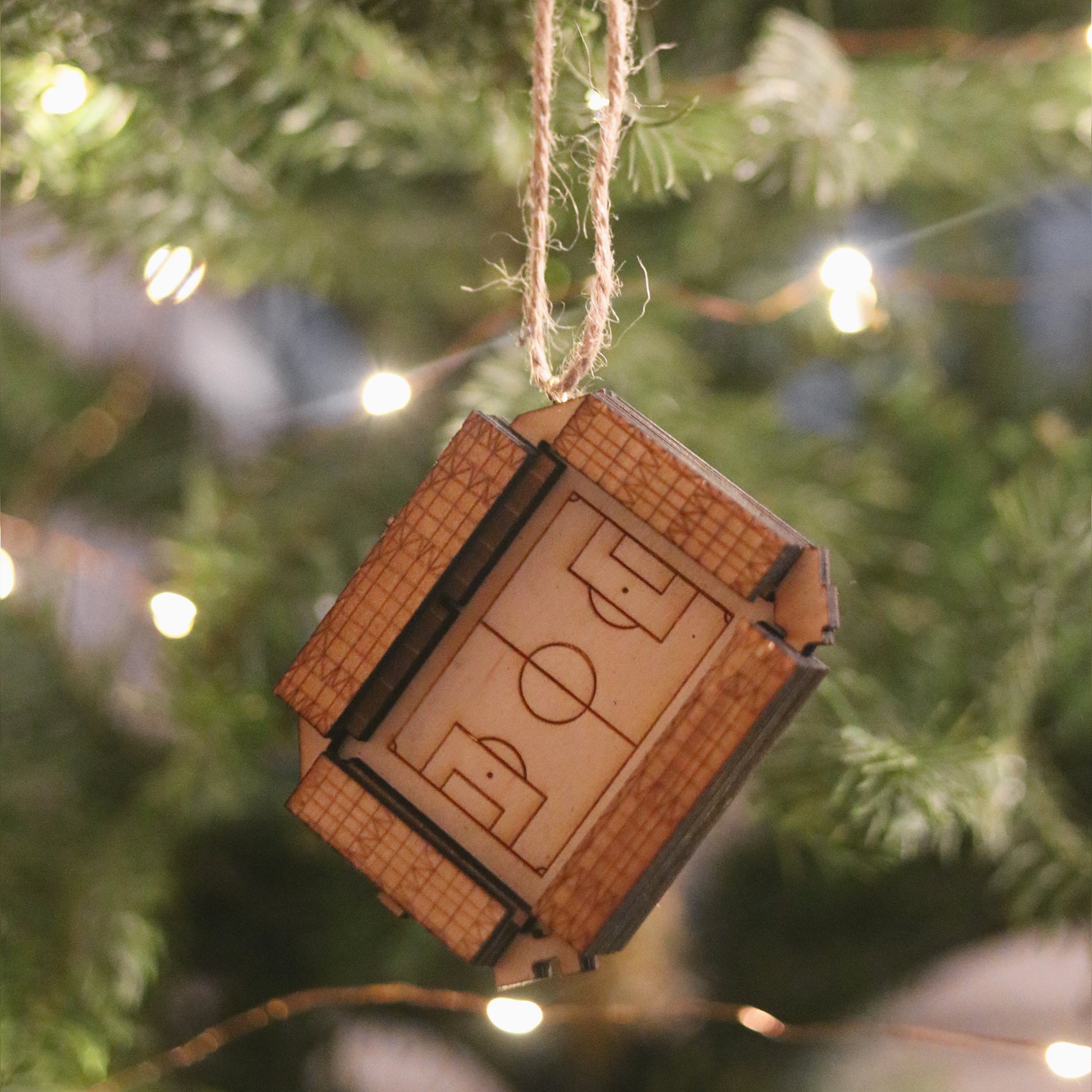 Celebrate your love for The Den this festive season with a hand-finished Millwall inspired Christmas tree ornament. Made from intricately laser-cut birch, this decoration captures the essence of one of English football's most iconic grounds, complete with delicate details that bring the pitch and stands to life.