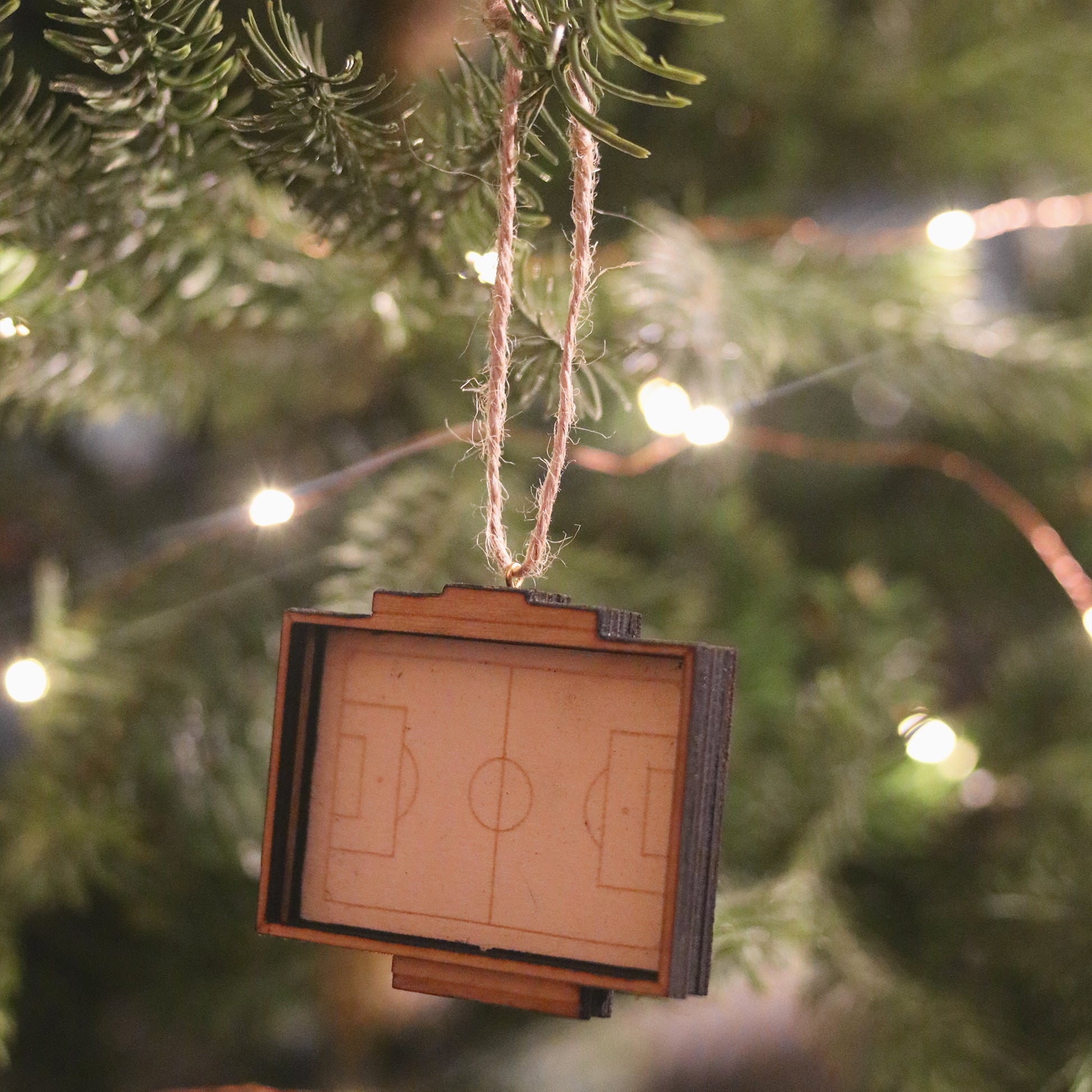 Celebrate your love for Salford City this festive season with a hand-finished Moor Lane inspired Christmas tree ornament. Made from intricately laser-cut birch, complete with delicate details that bring the pitch and stands to life.