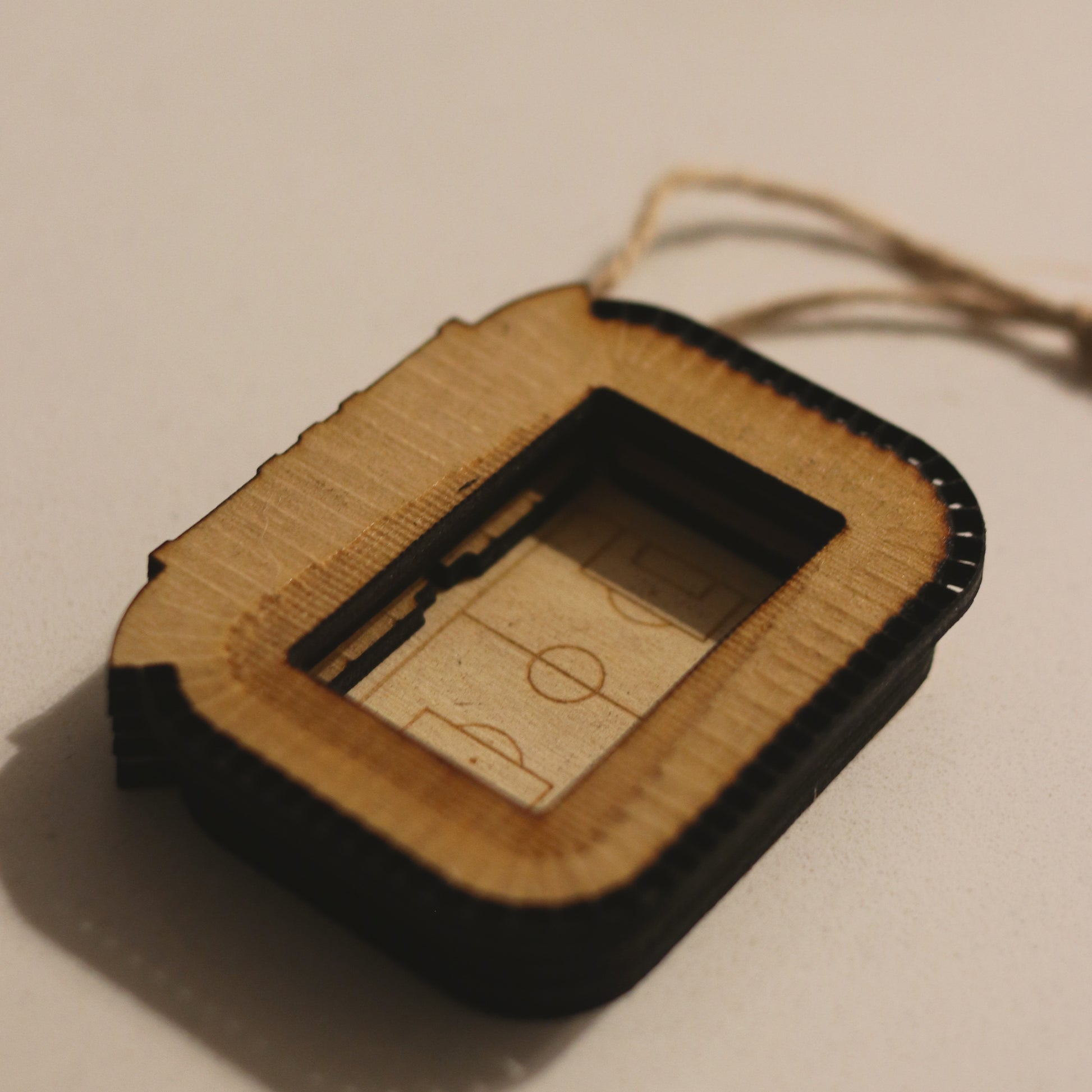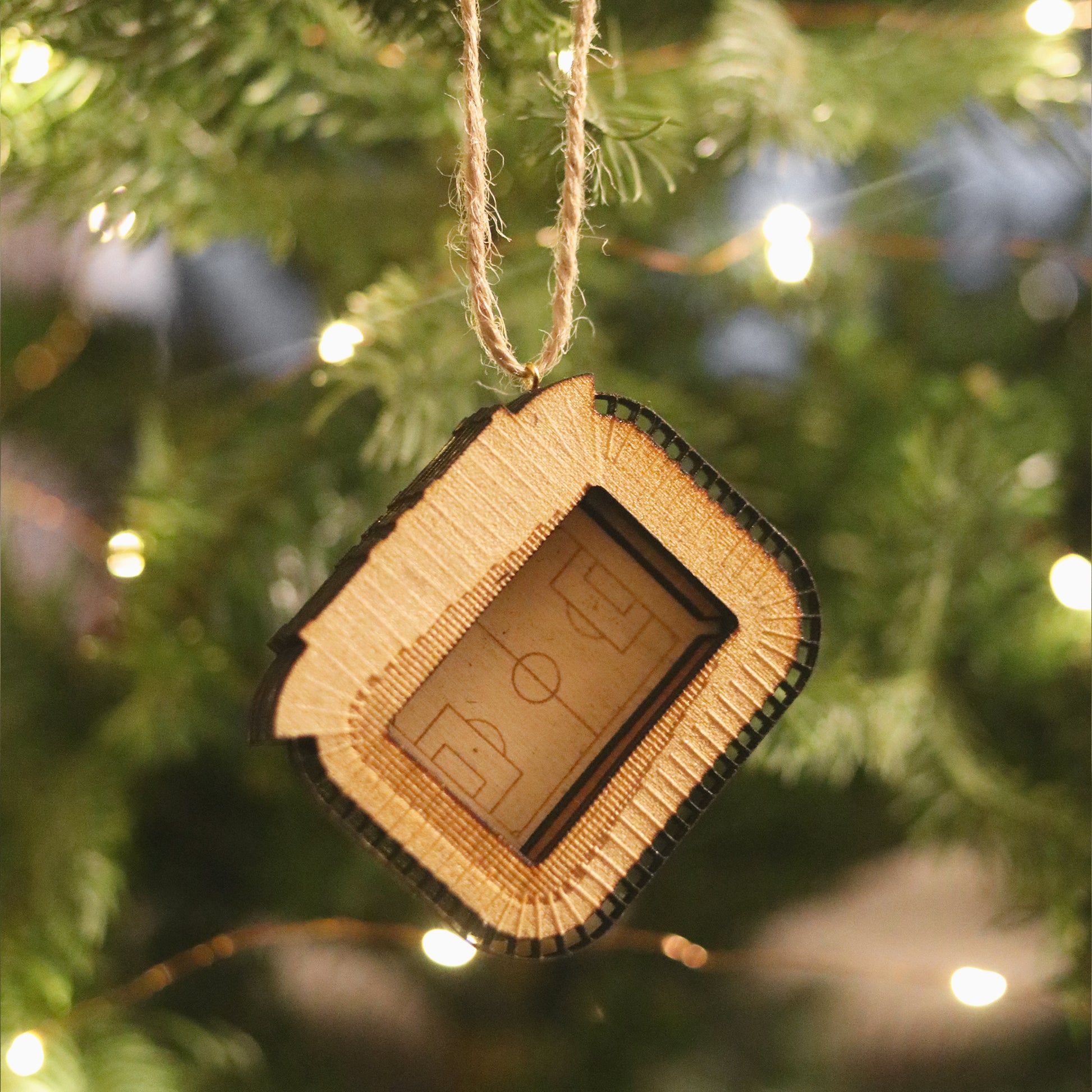 Celebrate your love for Swansea City this festive season with a hand-finished Swansea.com Stadium inspired Christmas tree ornament. Made from intricately laser-cut birch, complete with delicate details that bring the pitch and stands to life.
